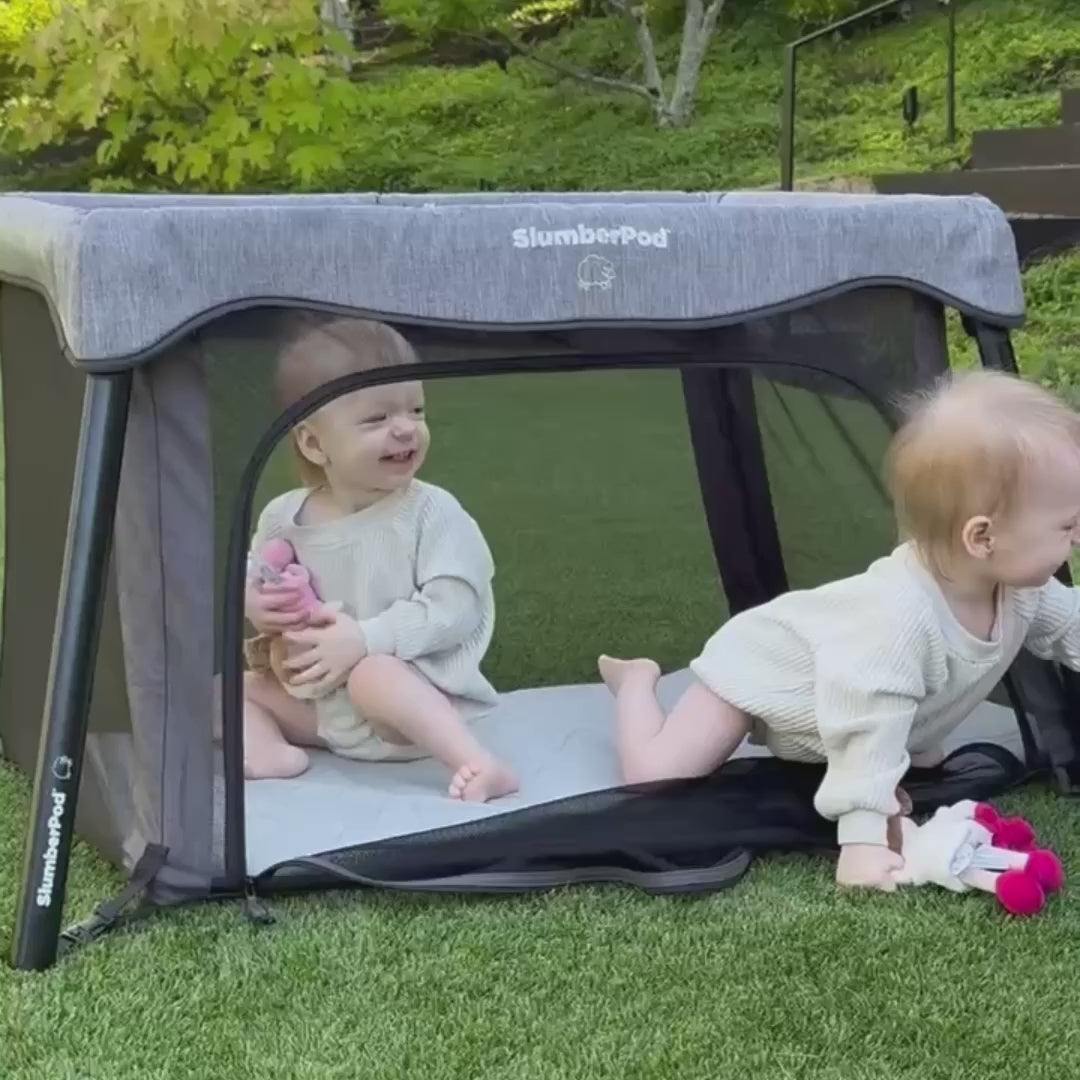 Small, lightweight, and quick to set up, SlumberGo creates a safe, comfy space for play and rest wherever you are.