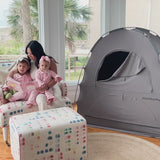 Meet the travel game-changer that allows babies and toddlers to dream sweetly with light-blocking magic! Pair with a playard, mini crib, or inflatable toddler air mattress for the perfect private sleep nook at home or on the go.